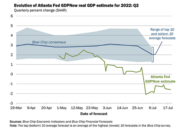 Despite already feeling like we are in a recession, the Atlanta Fed GDPNow data has confirmed a negative Q1 GDP (-1.5) and foreshadowed a 0 to negative Q2 GDP.