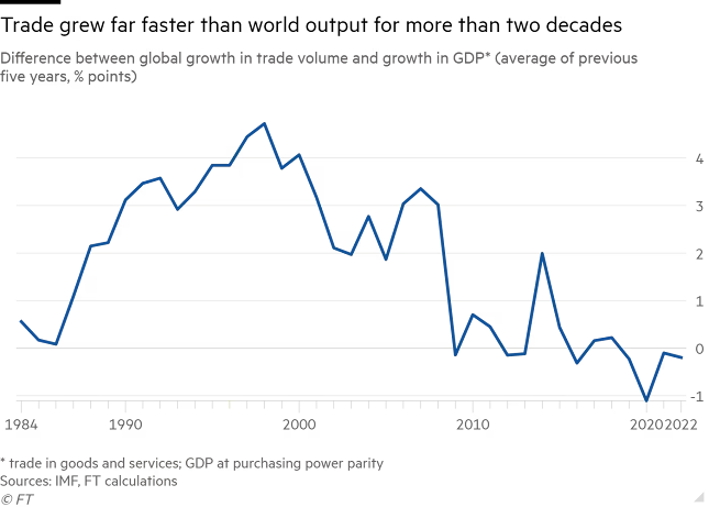 The reality is that the ratio of world trade to output is still close to an all-time high.